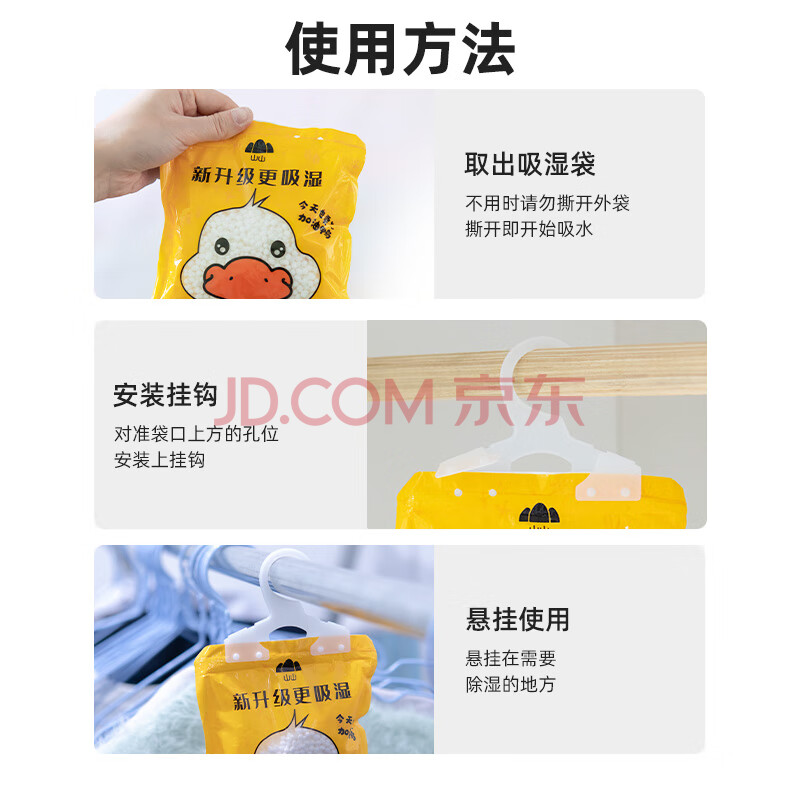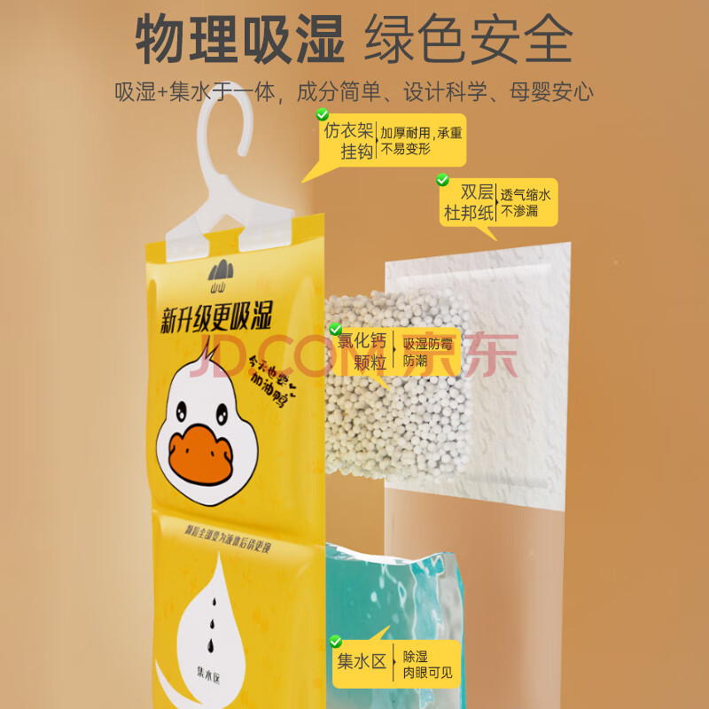 商品相册:山山加油鸭除湿袋可挂式防霉干燥剂防潮衣柜室内吸潮宿舍230g*10袋第