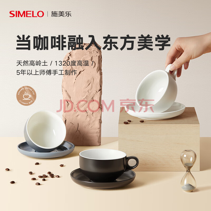 商品相册:SIMELO施美乐 陶瓷咖啡杯 拉花杯 拿铁杯 大口径杯碟套装蓝山白第