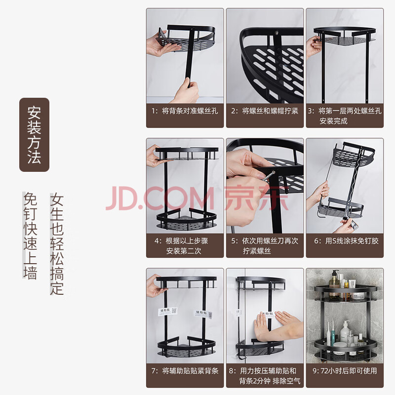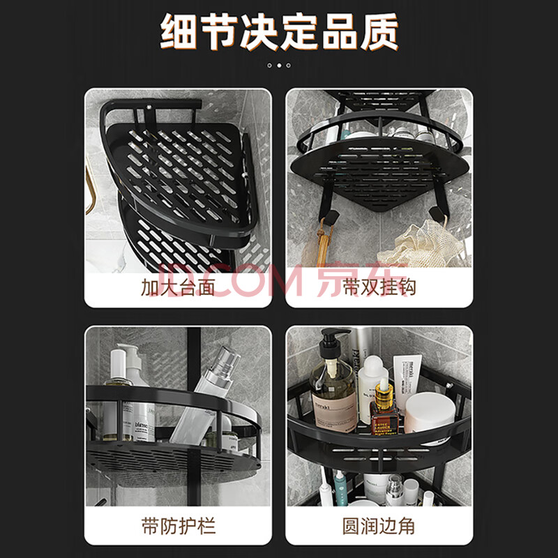 商品相册:馨沛卫生间置物架太空铝免打孔厕所洗手间浴室墙角拐角三层转角置物架第
