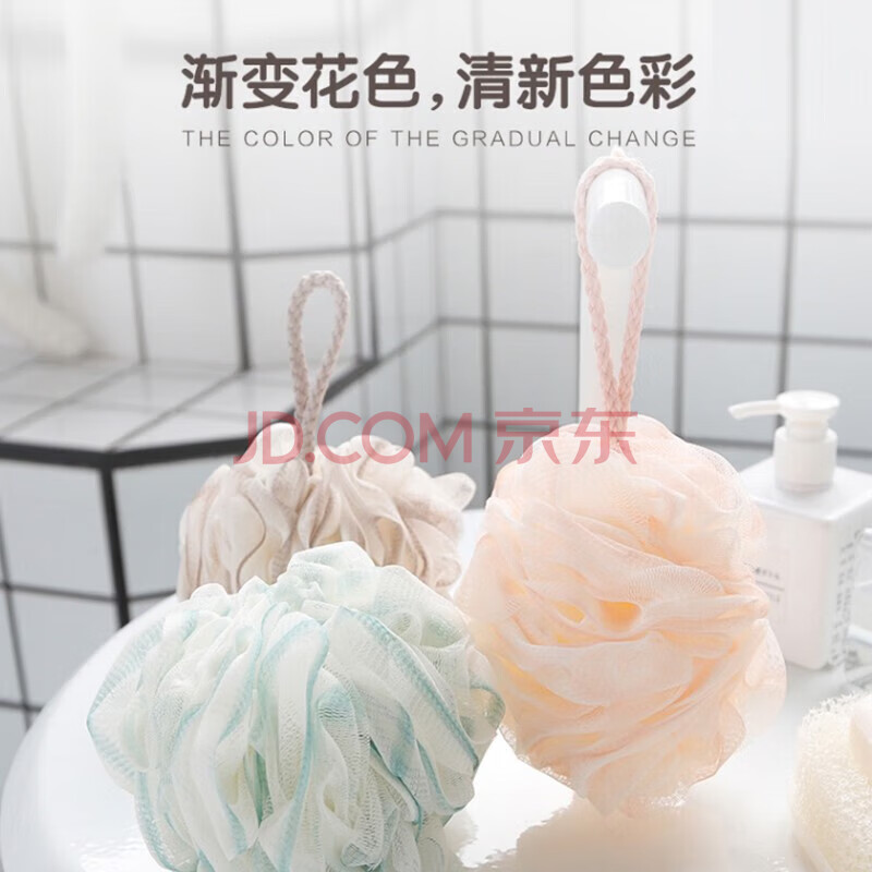 商品相册:茶花 泡澡沐浴球 渐变柔韧弹力搓澡巾 沐浴花搓背搓澡50g第