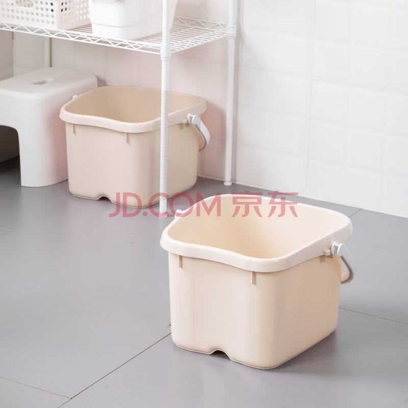 商品相册:茶花 泡脚桶洗脚盆 泡脚盆塑料盆 足浴盆足浴桶 塑料桶 浅咖 1只装第