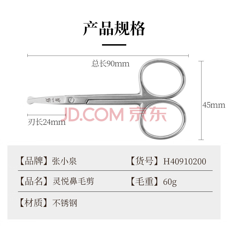 商品相册:张小泉鼻毛剪刀不锈钢圆头剪鼻毛修剪器男士女士专用小指圈H40910200第