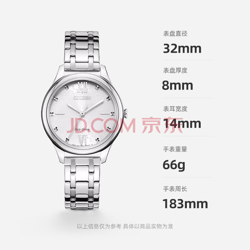 商品相册:西铁城(CITIZEN)手表女日韩表光动能白色表盘钢带时尚送送女友礼物EM0500-73A第