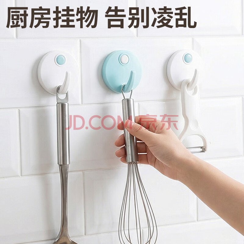 商品相册:茶花厨房挂钩贴钩 免打孔浴室衣服毛巾挂钩强力粘钩随机颜色 3只第1张/共9