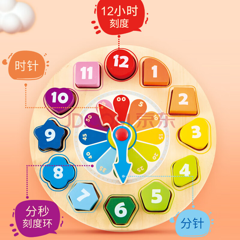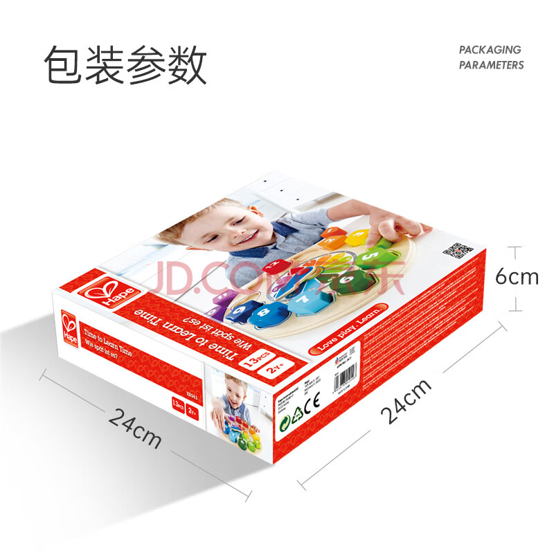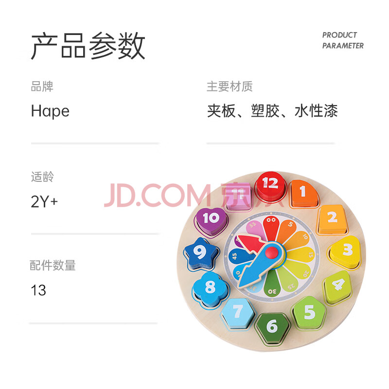 商品相册:Hape(德国)儿童玩具拼板教具数字颜色积木时钟男女孩新年礼物E8043第1张/共8