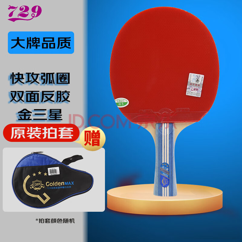商品相册:729 乒乓球拍横拍长柄3星 友谊金三星兵兵球拍双面反胶第