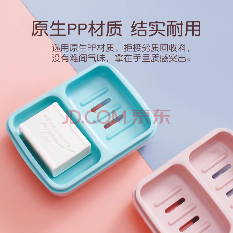商品相册:茶花肥皂盒 香皂架子皂碟 香皂盒子双格沥水香皂盒子 蓝色 1只装第