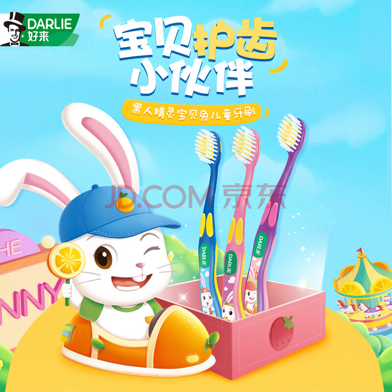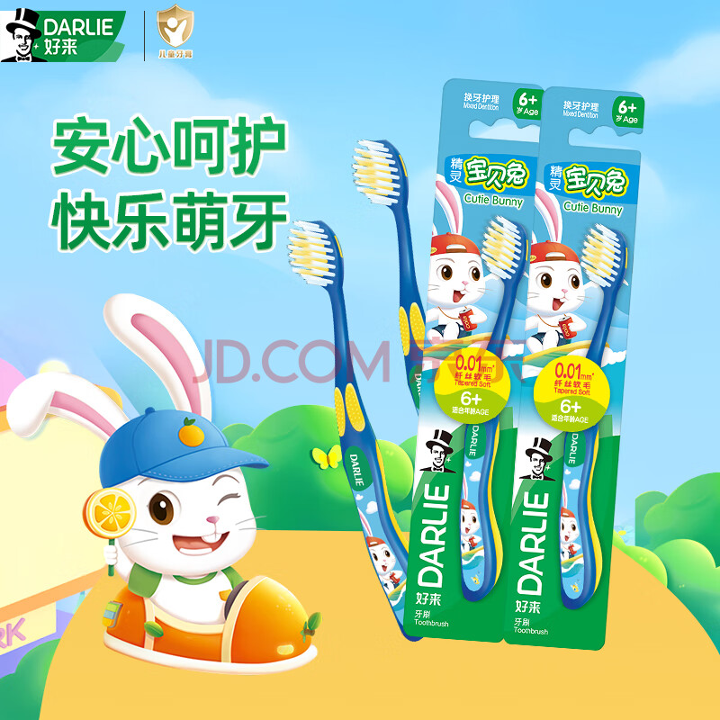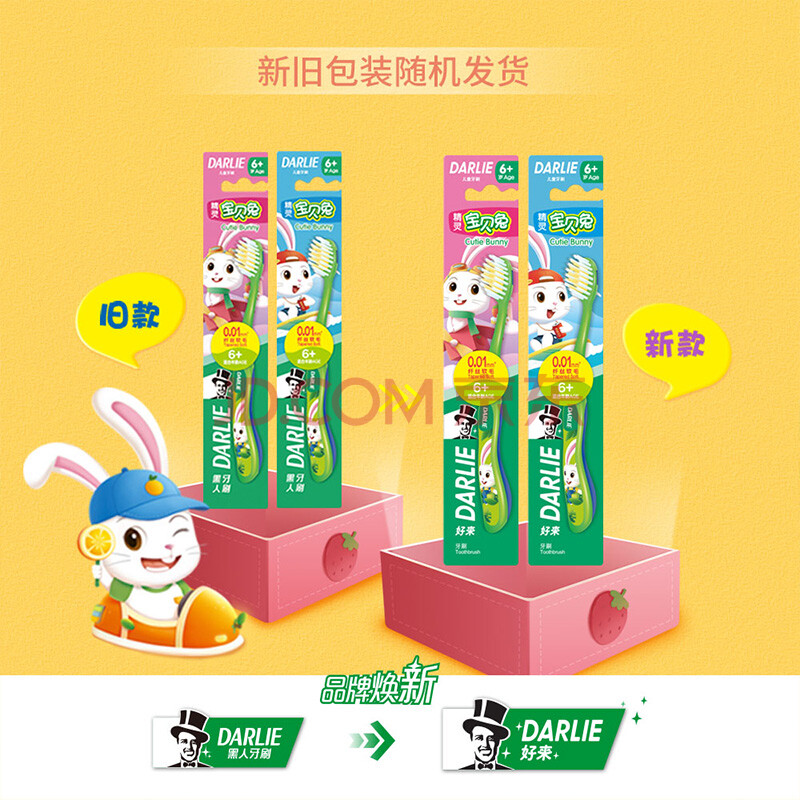 商品相册:DARLIE好来(原黑人)宝贝兔儿童牙刷2支套装 小头软毛6-12岁以上颜色随机第