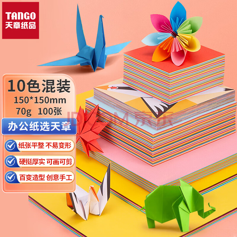 商品相册:天章 (TANGO)【老师推荐】100张15*15cm彩纸 送教程手工折纸 10色方形手工DIY折剪纸 美术绘画涂鸦软卡纸 70g第