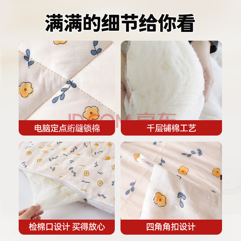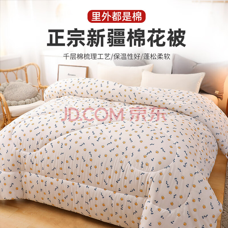 商品相册:梦诗娜 100%全棉被子新疆棉花被纯棉被芯棉被秋冬被5斤150x200cm花初晴第