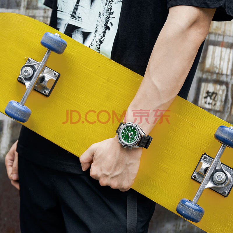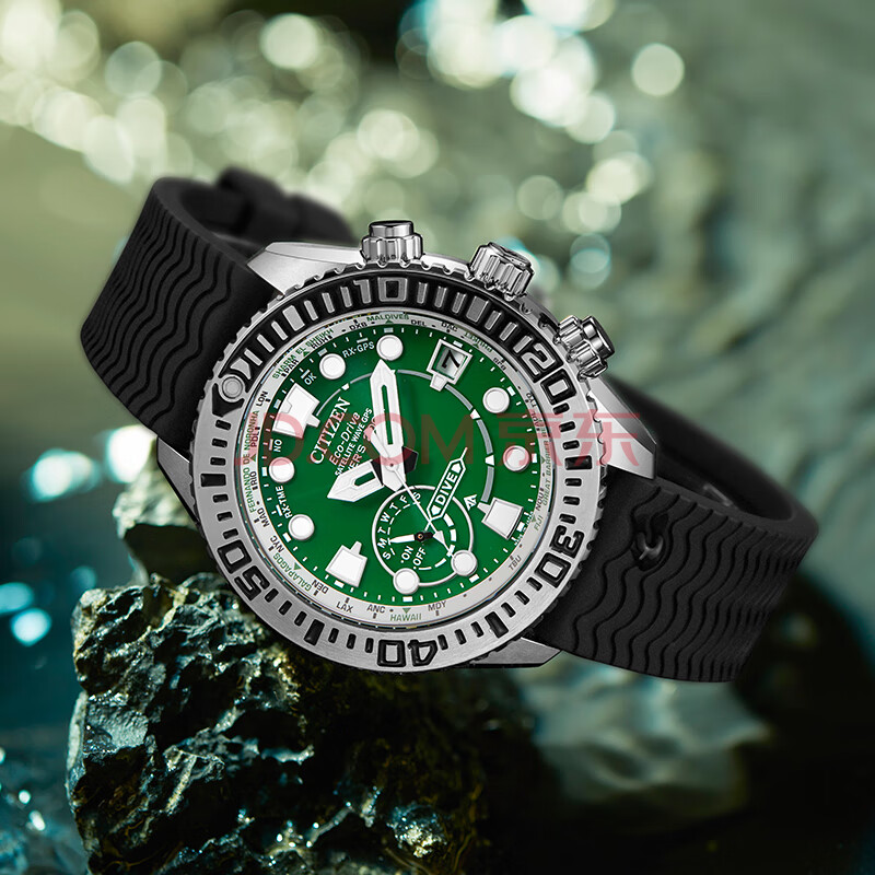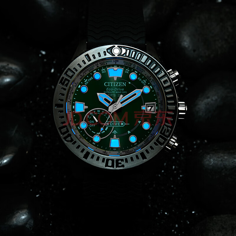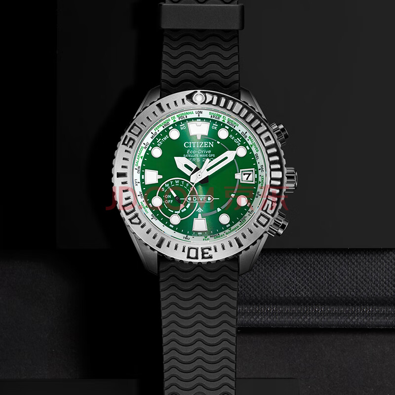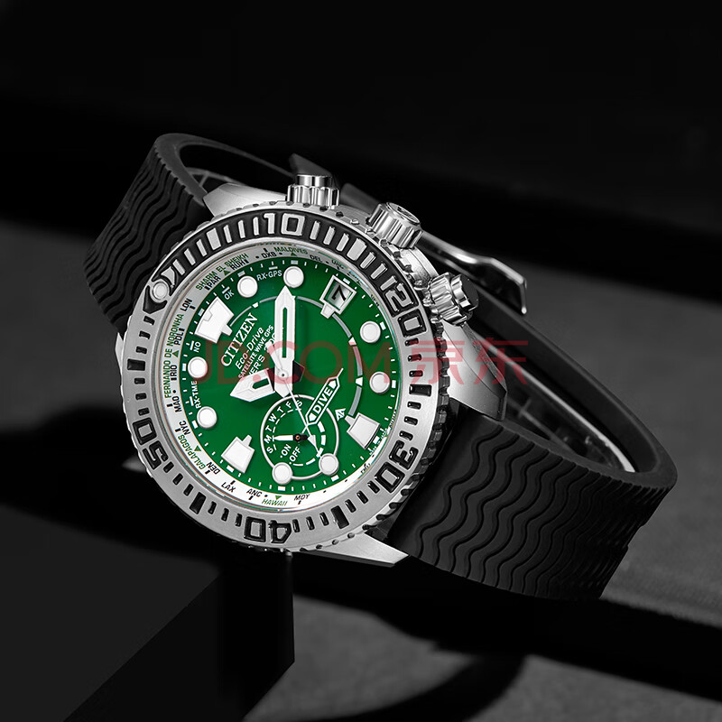 商品相册:西铁城(CITIZEN)手表男日韩表绿水鬼光动能万年历PU带运动送男友礼物CC5001-00W第
