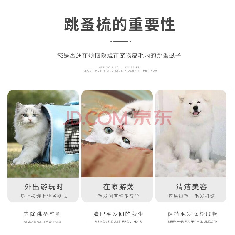 商品相册:憨憨乐园 狗梳子除蚤猫梳子猫咪刷子脱毛梳狗毛刷宠物梳毛器跳蚤梳白色第