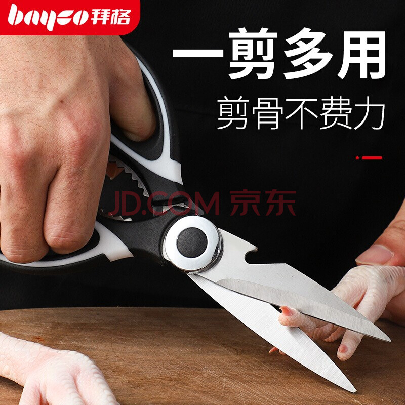 商品相册:拜格(BAYCO)不锈钢厨房剪刀烤肉剪厨用剪鸡骨剪多功能家用食品剪刀 BD4882第