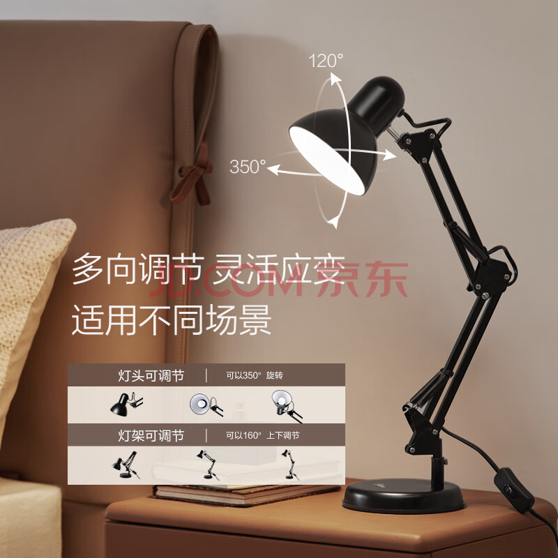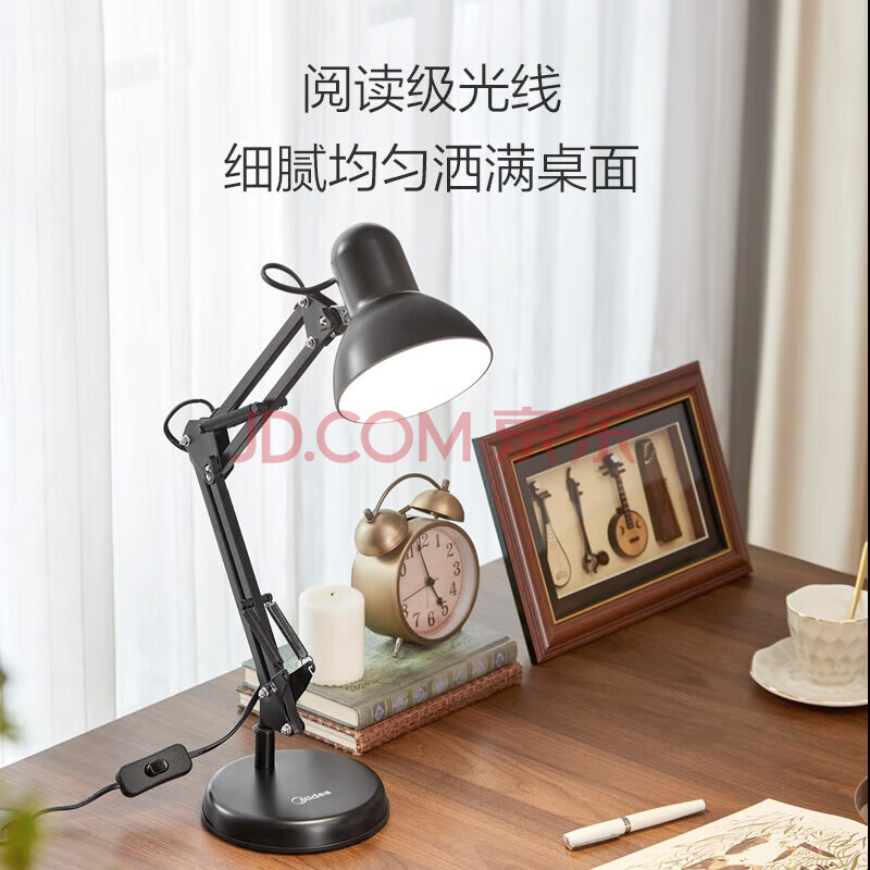 商品相册:美的(Midea) 美式金属长臂LED台灯 学生学习工作阅读台灯赠3瓦球泡赠完即止第