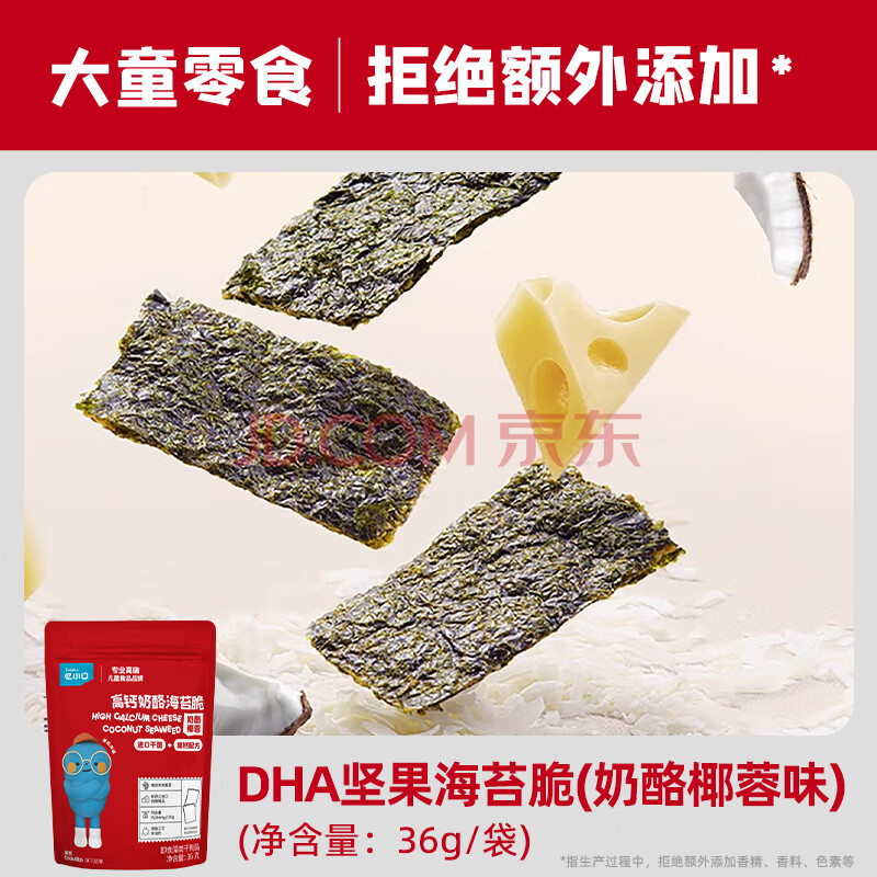 商品相册:英氏(Engnice)忆小口儿童零食夹心海苔脆36g/盒椰蓉味高钙奶酪即食休闲零食海苔第