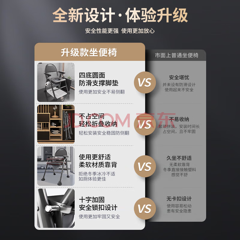 商品相册:妙馨思老人坐便椅凳可折叠病人孕妇坐便器便携式移动马桶大便坐厕座椅子第