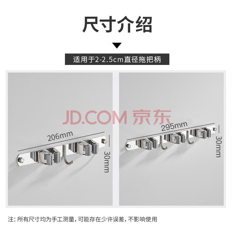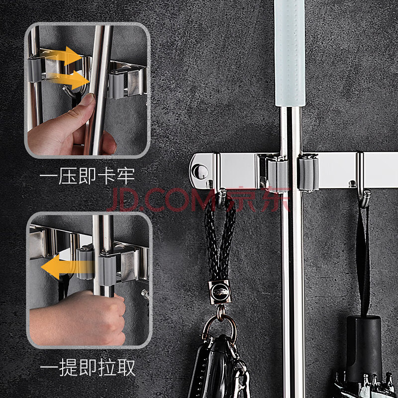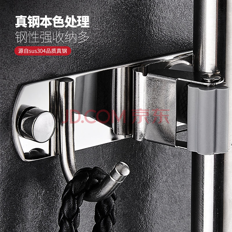 商品相册:馨沛304不锈钢拖把挂钩排浴室免打孔扫把拖把架带阳台拖把夹墩布挂钩第