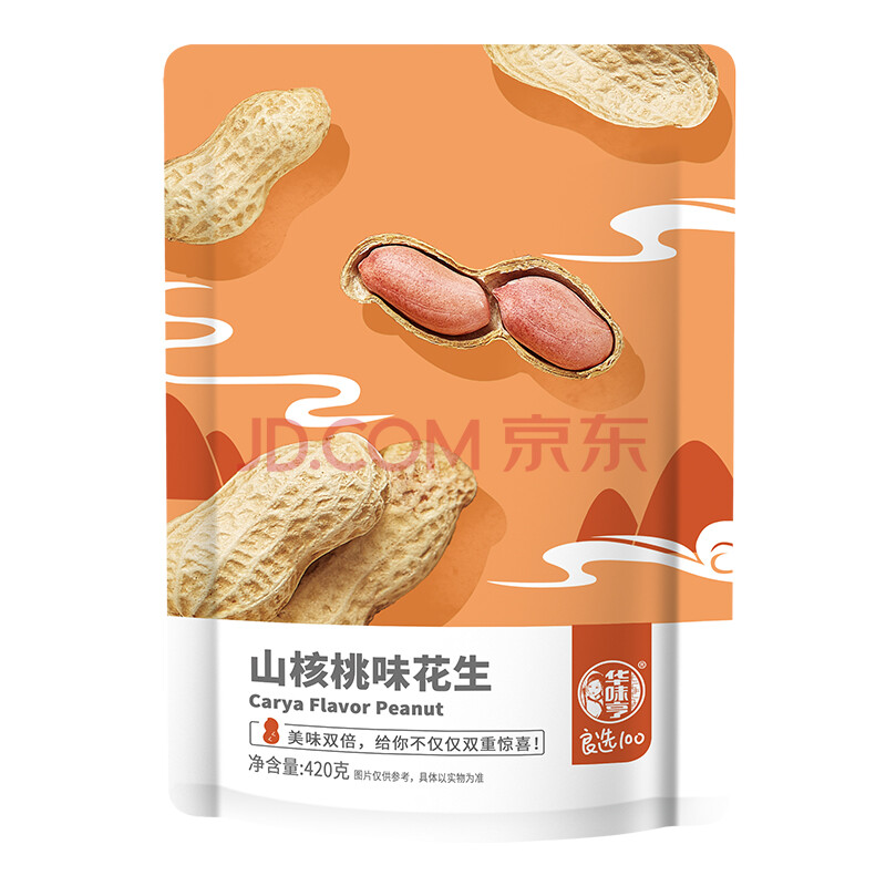 商品相册:华味亨山核桃味花生420g/袋 休闲零食品坚果炒货带壳花生团购休闲零食第