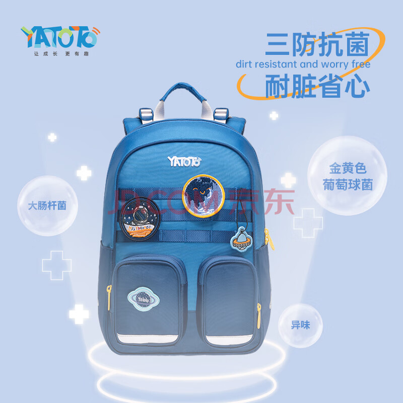 商品相册:Yatoto小学生书包1-4年级减负护脊背包儿童双肩包抗菌礼物男 超能星飞船第