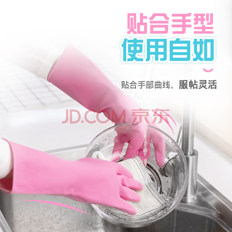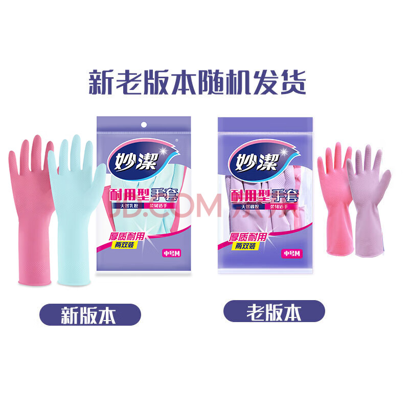 商品相册:妙洁耐用型手套 天然乳胶 2双装 中号M码洗碗手套多款包装随机发货第1张/共7