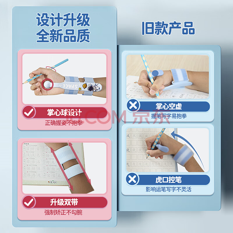 商品相册:西玛(SIMAA)防勾腕矫正器握笔姿势矫正小学生幼儿园初学者加强版防勾腕矫正器带防勾腕握笔器-小熊粉第