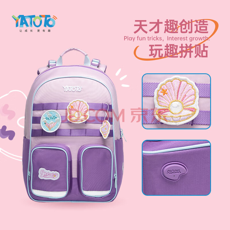 商品相册:Yatoto小学生书包1-4年级减负护脊背包儿童双肩包抗菌礼物女 美人鱼公主第