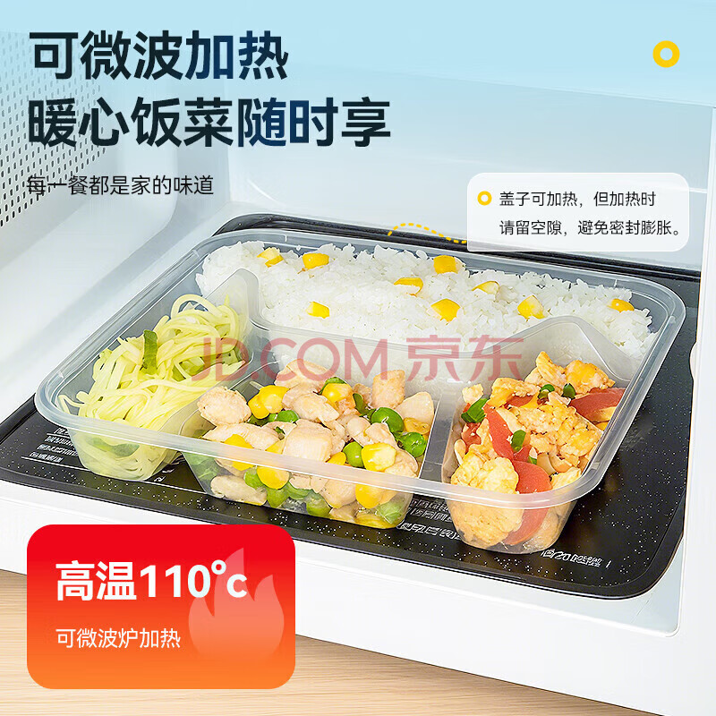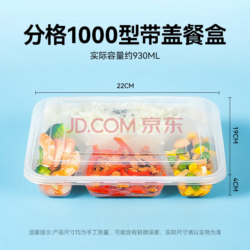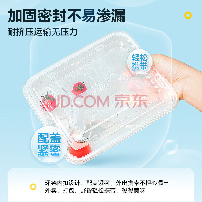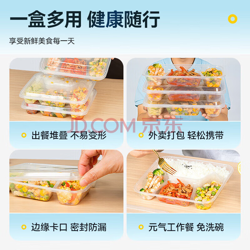 商品相册:特美居一次性饭盒分格餐盒四格带盖加厚打包盒食品级可微波1000型150套第1张/共7
