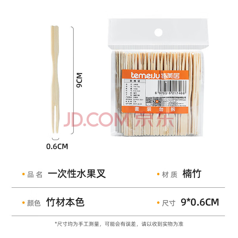 商品相册:特美居(temeiju)水果叉一次性叉子月饼蛋糕竹制加厚点心叉外卖打包环保木叉100支第