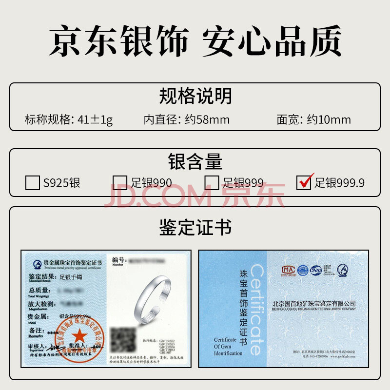 商品相册:唯一(Winy)银手镯女款足银9999实心镯子老人正品纯银饰品生日礼物送妈妈长辈第