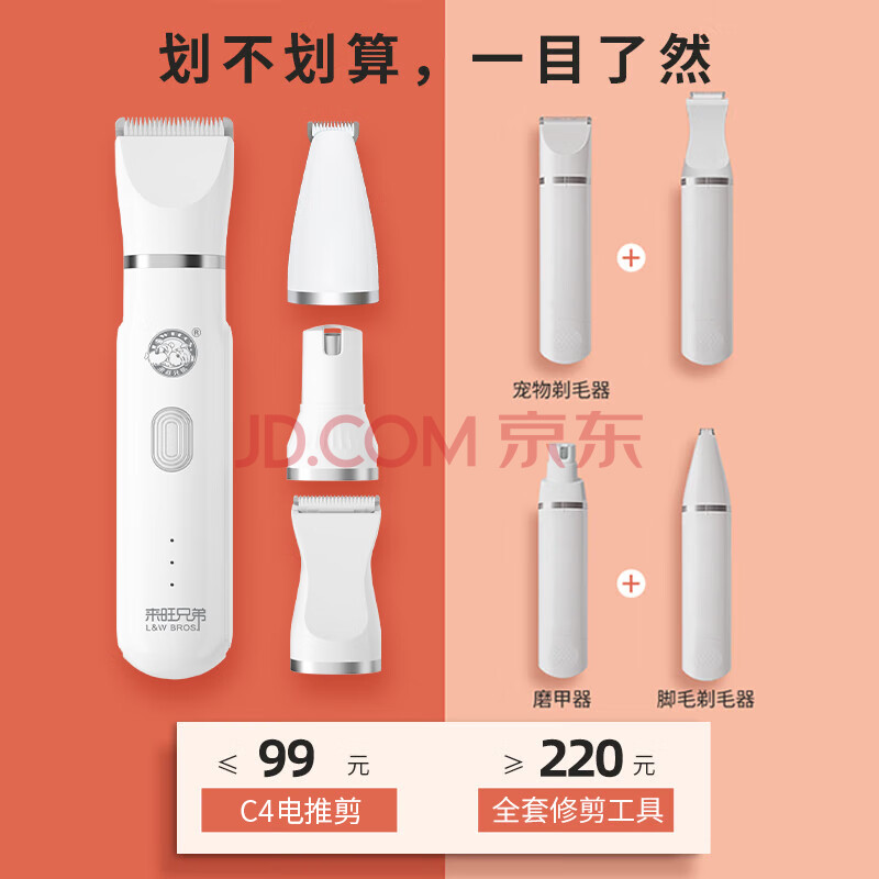 商品相册:来旺兄弟宠物剃毛器狗狗四合一猫咪剃脚毛推子电动磨甲修毛充电款第1张/共8