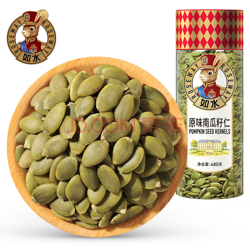 商品相册:如水 原味南瓜子仁480g/罐 烘焙7分熟坚果瓜籽新货 老少皆宜休闲零食第1张/共6