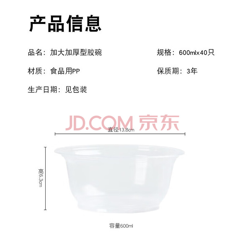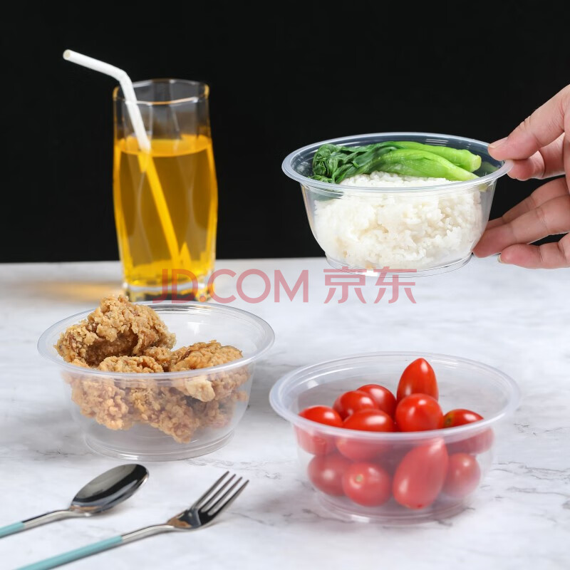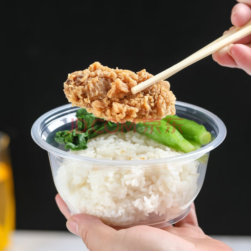 商品相册:芳草地一次性碗600ml*40只加厚塑料碗水饺汤圆烧烤餐盒圆形打包盒不带盖第