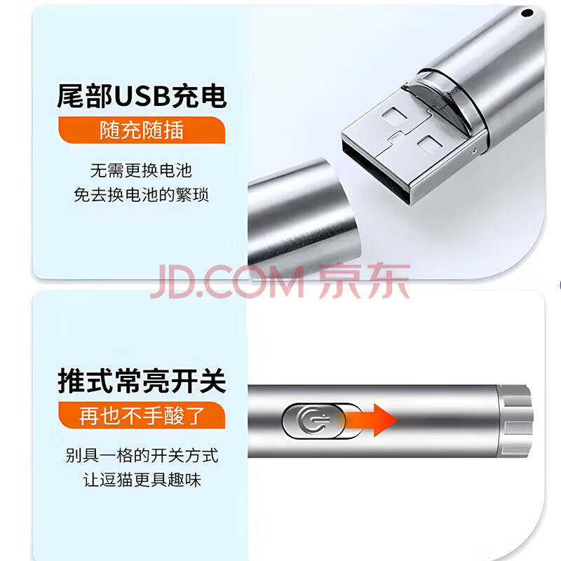 商品相册:灵宠物语逗猫激光笔猫玩具逗猫棒USB充电自嗨逗猫玩具宠物红外线激光灯第1张/共9
