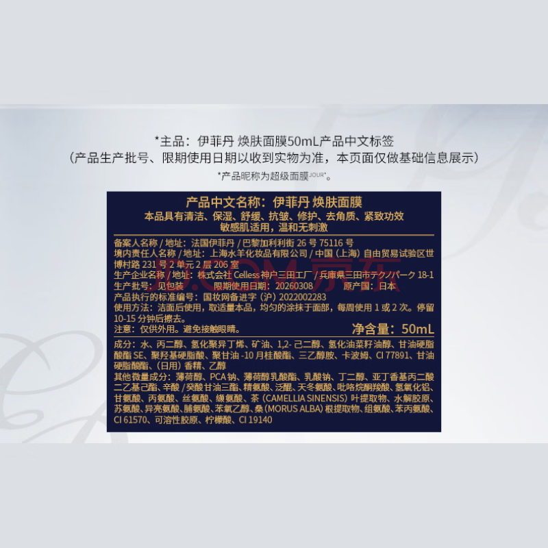 商品相册:EviDenS de Beauté伊菲丹【京东独家周边】超级面膜jour50ml 抗皱敏感肌护肤品第