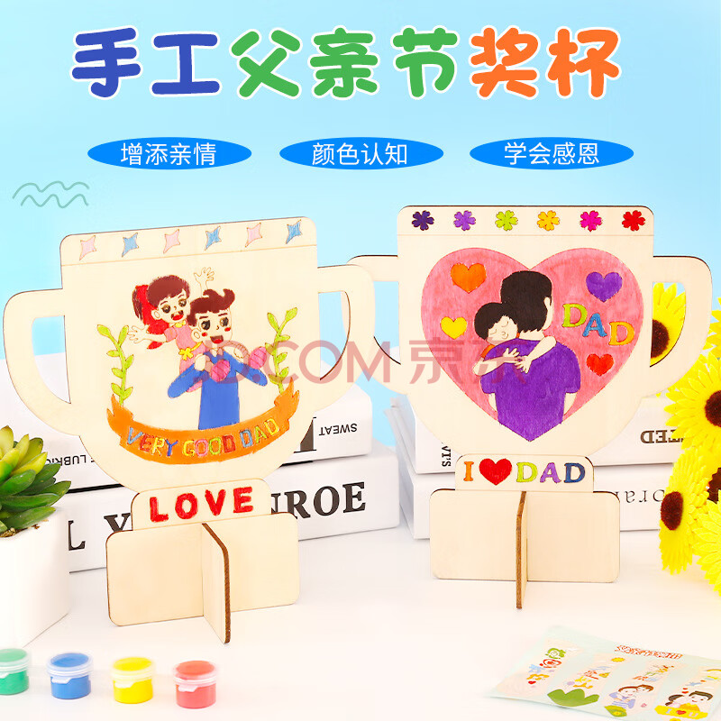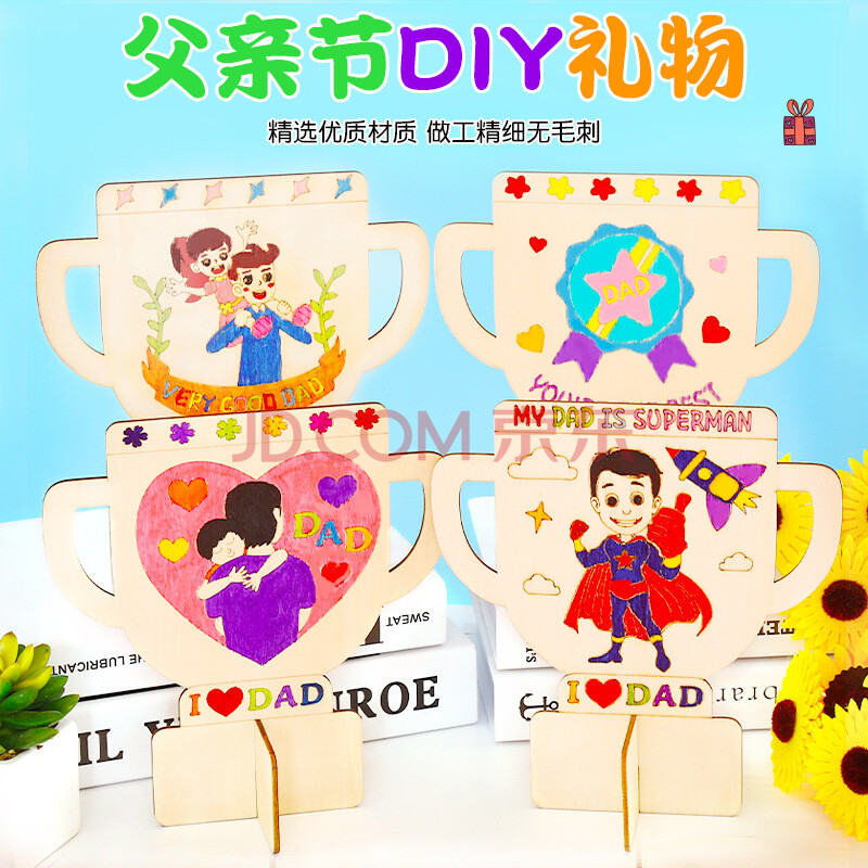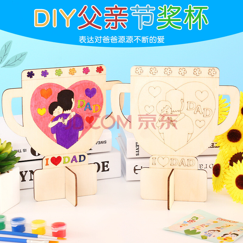商品相册:乐童童 父亲节木质奖杯儿童手工diy制作绘画涂鸦木版画幼儿园玩具 50个起拍第