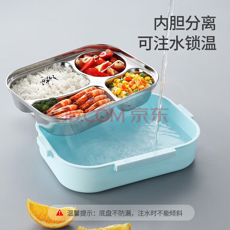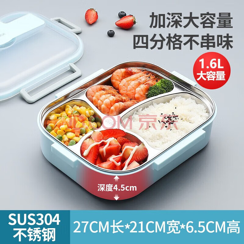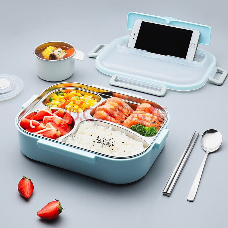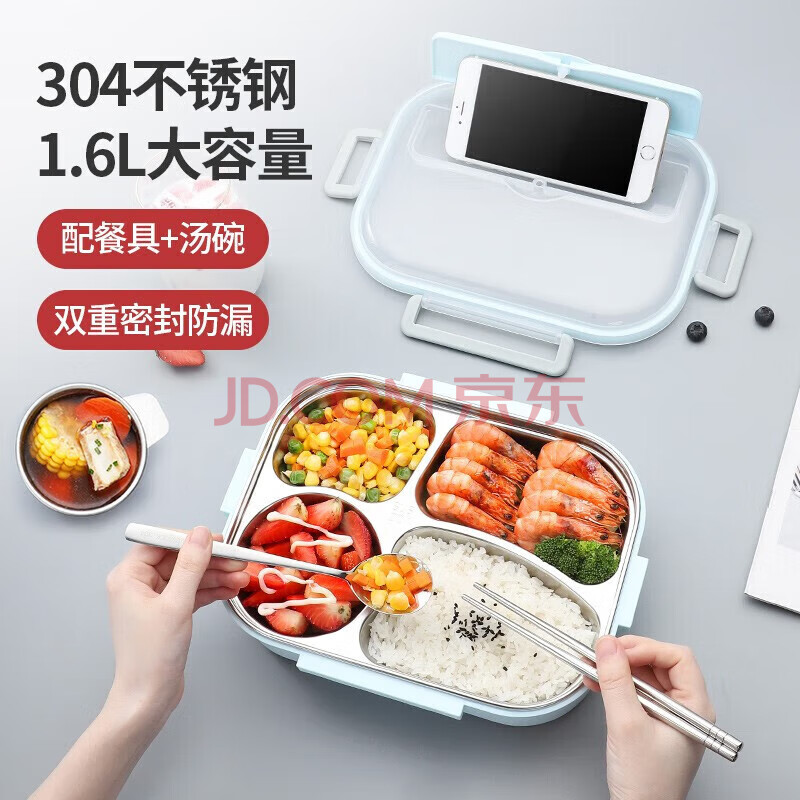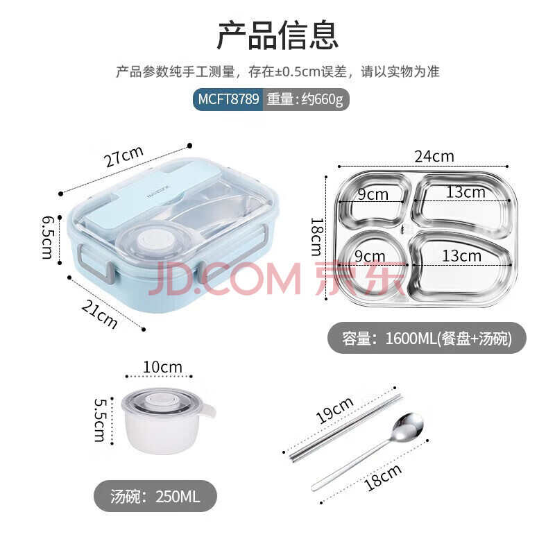 商品相册:美厨(maxcook)304不锈钢饭盒 加大加深4格学生饭盒餐盘1.6L 配餐具汤碗MCFT8789第1张/共8