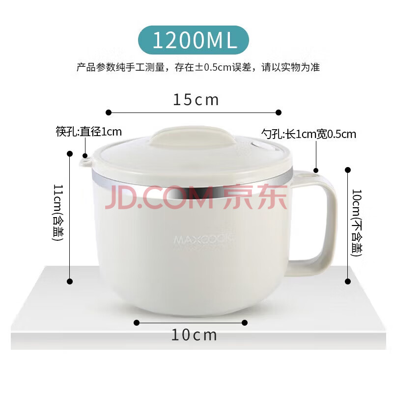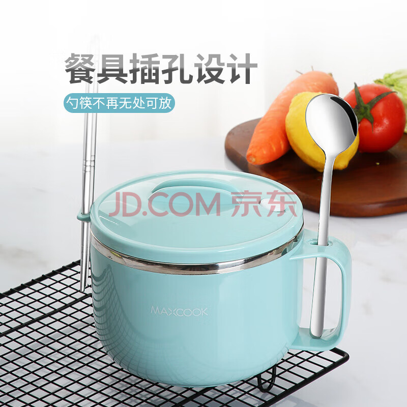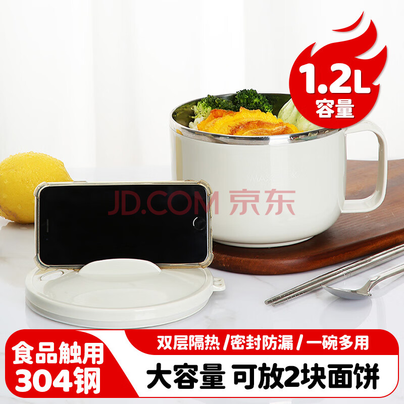 商品相册:美厨(MAXCOOK)304不锈钢泡面碗 学生饭盒餐杯泡面杯1200ML 带盖 灰色MCWA108第