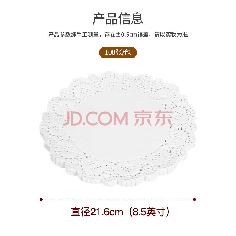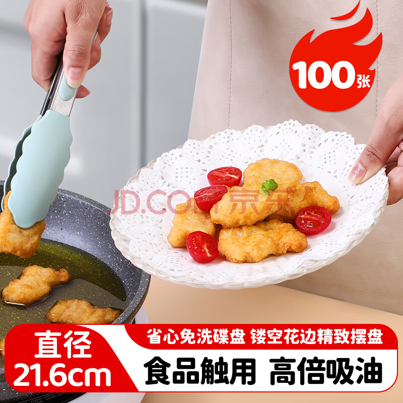 商品相册:美厨(maxcook)一次性吸油纸烹饪纸烘焙纸隔油纸烧烤纸花边21.6cm 100张MCPJ7033第
