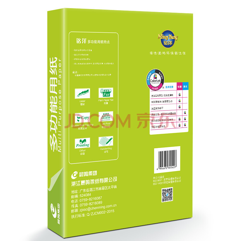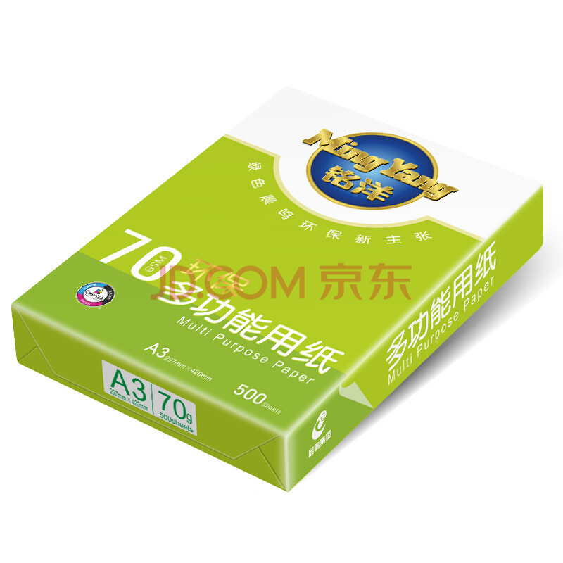 商品相册:晨鸣 铭洋(绿) 70g A3 多功能复印纸 500张/包 5包/箱(2500张)第