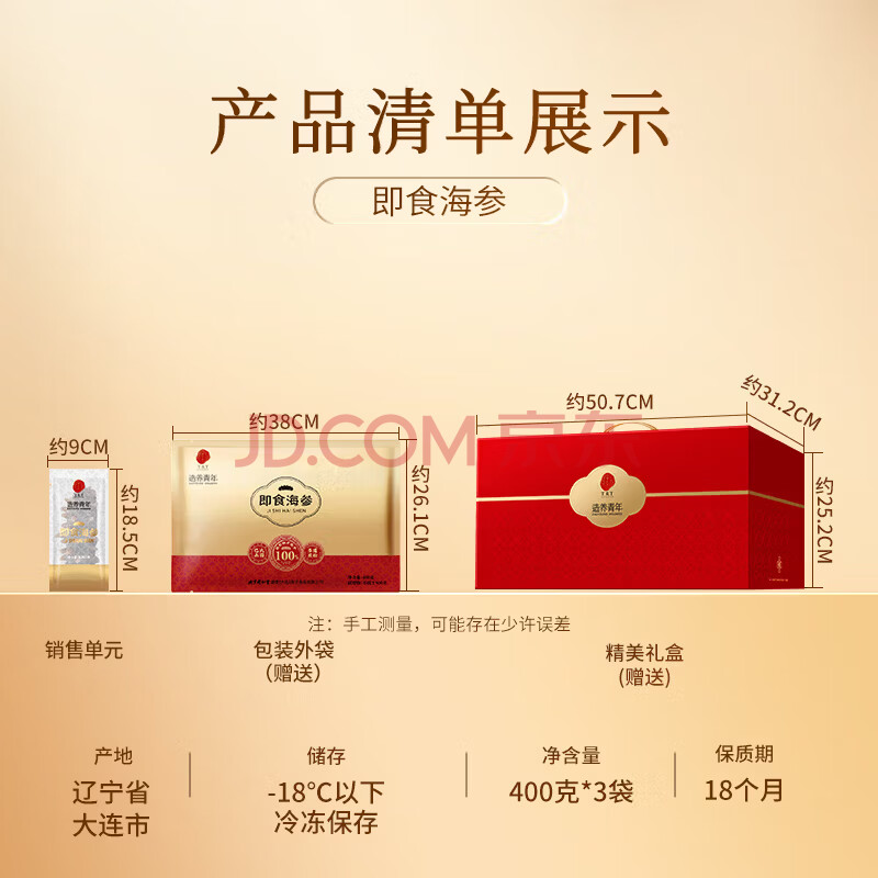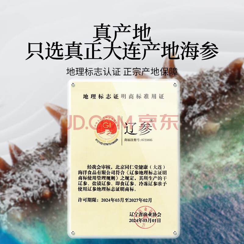 商品相册:同仁堂即食海参大连海参礼盒1200g21只固形物100% 海参即食独立包装送礼第
