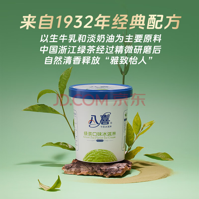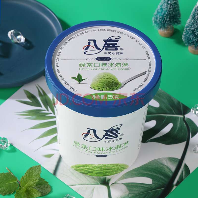 商品相册:八喜冰淇淋 绿茶口味550g*1桶 家庭装 生牛乳冰淇淋桶装第