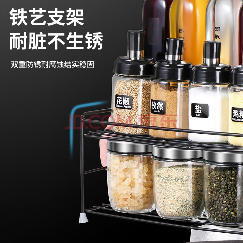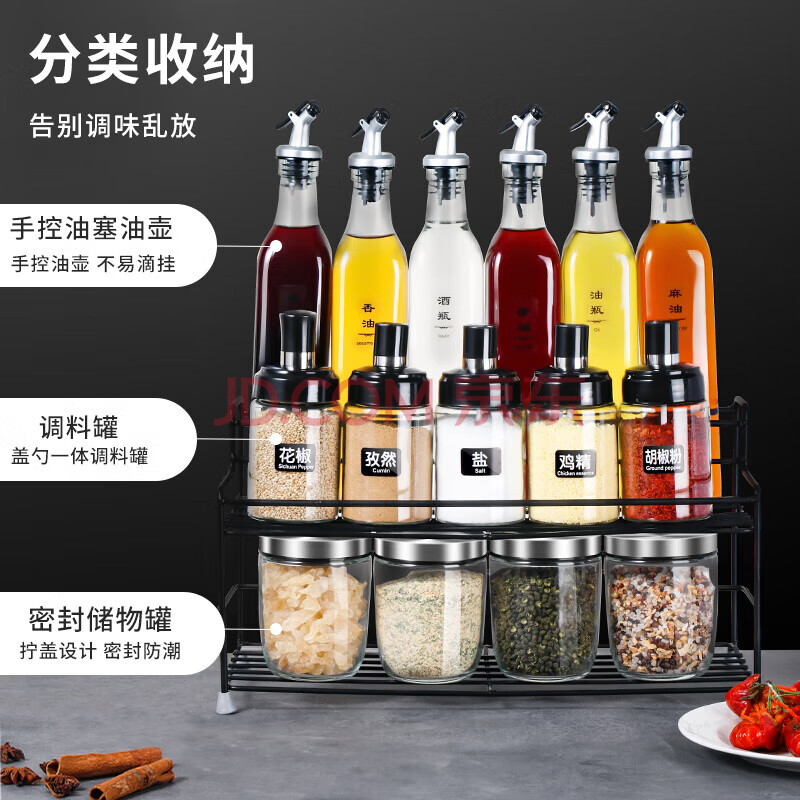 商品相册:拜杰油壶调料瓶调料罐盐罐调料盒调味罐调料瓶油瓶调料置物架16件套第