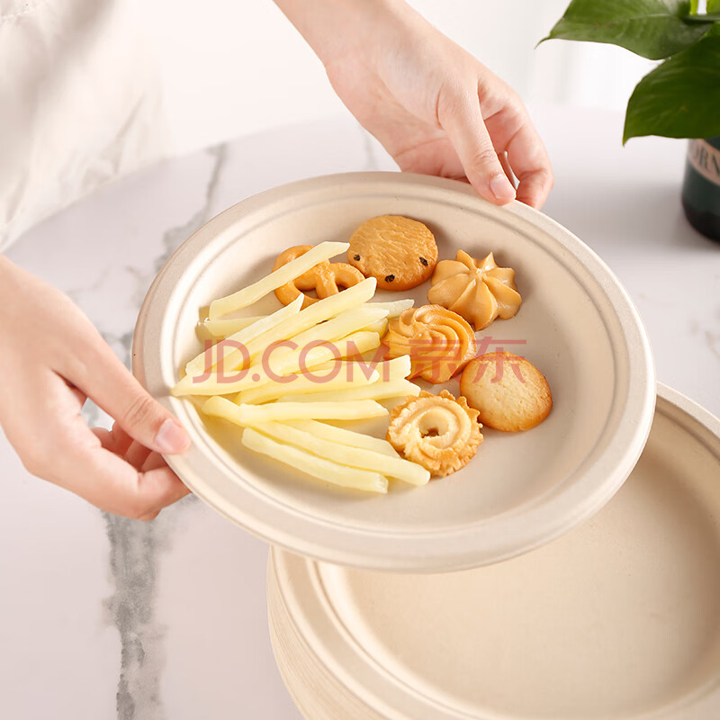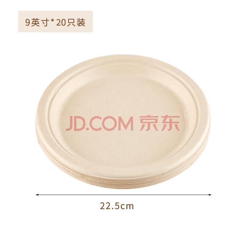 商品相册:佳茉甘蔗浆纸盘纸碗一次性餐具防水防油本色可降解圆盘9英寸-20只装第