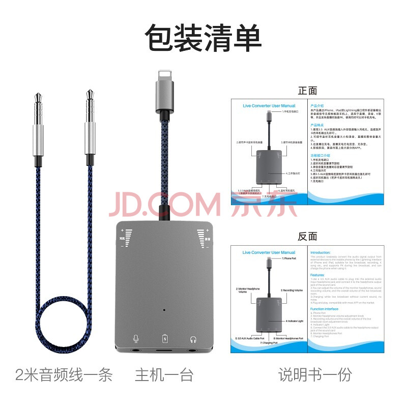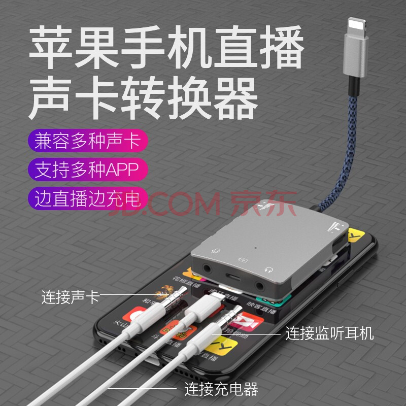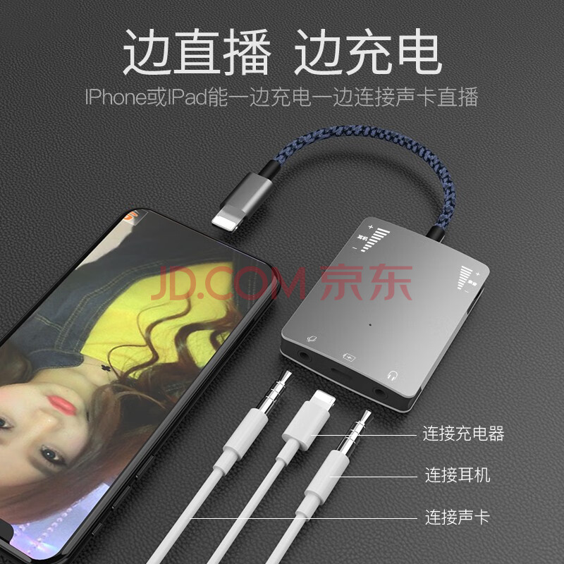 商品相册:JOWOYE苹果直播转接头iPhone手机转换器艾肯创新内外置电脑声卡转换器调音台话筒连麦K歌主播1号音频线第
