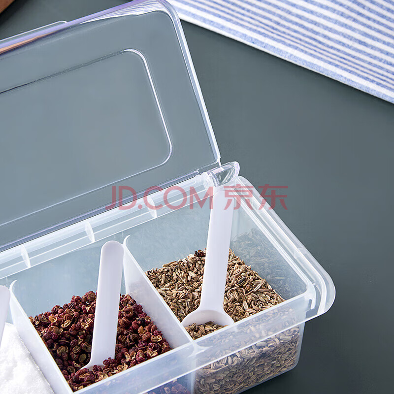 商品相册:JEKO&JEKO调味罐翻盖调味瓶塑料套装味精盐盒带勺厨房调料盒全透明 四格式第