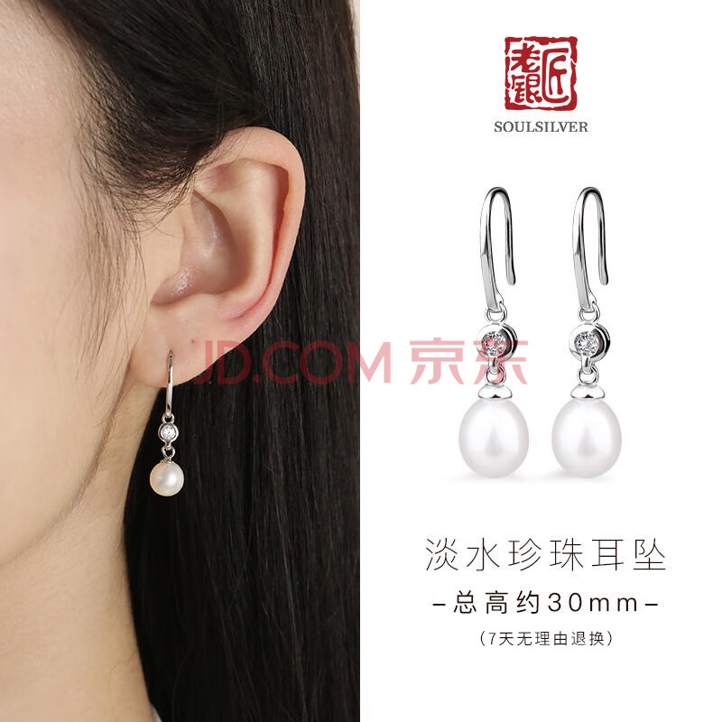 商品相册:老银匠s925银淡水珍珠银耳坠女生不易过敏送闺蜜女友长款珍珠银耳坠第