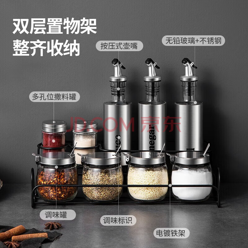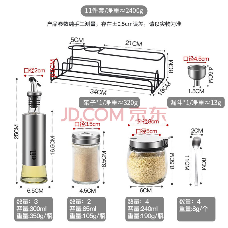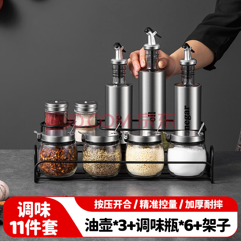 商品相册:美厨(MAXCOOK)玻璃油壶调料盒套装 油瓶盐罐调料架调料瓶 11件套 MCCU0539第