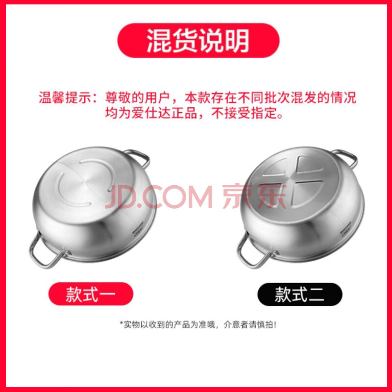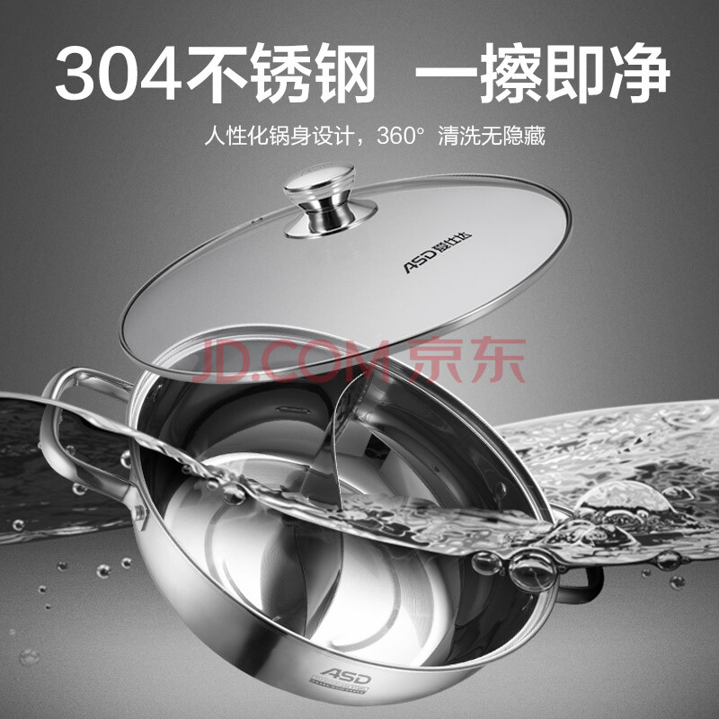 商品相册:爱仕达 ASD 火锅304不锈钢鸳鸯锅28CM火锅燃气电磁炉通用FS28A2WG第1张/共8