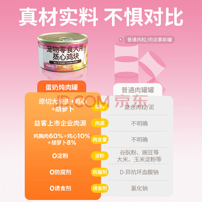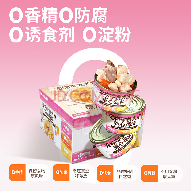 商品相册:益和(MATCHWELL)宠物零食湿粮猫狗零食蒸心鸡块鸡胸肉+胡萝卜+鸡心宠物罐头100g*8第