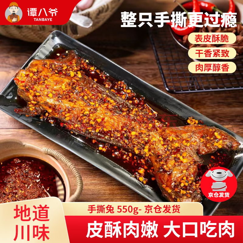 商品相册:谭八爷香辣味手撕兔550g兔子肉整只四川特产冷吃兔腿全兔小吃即食下酒菜第
